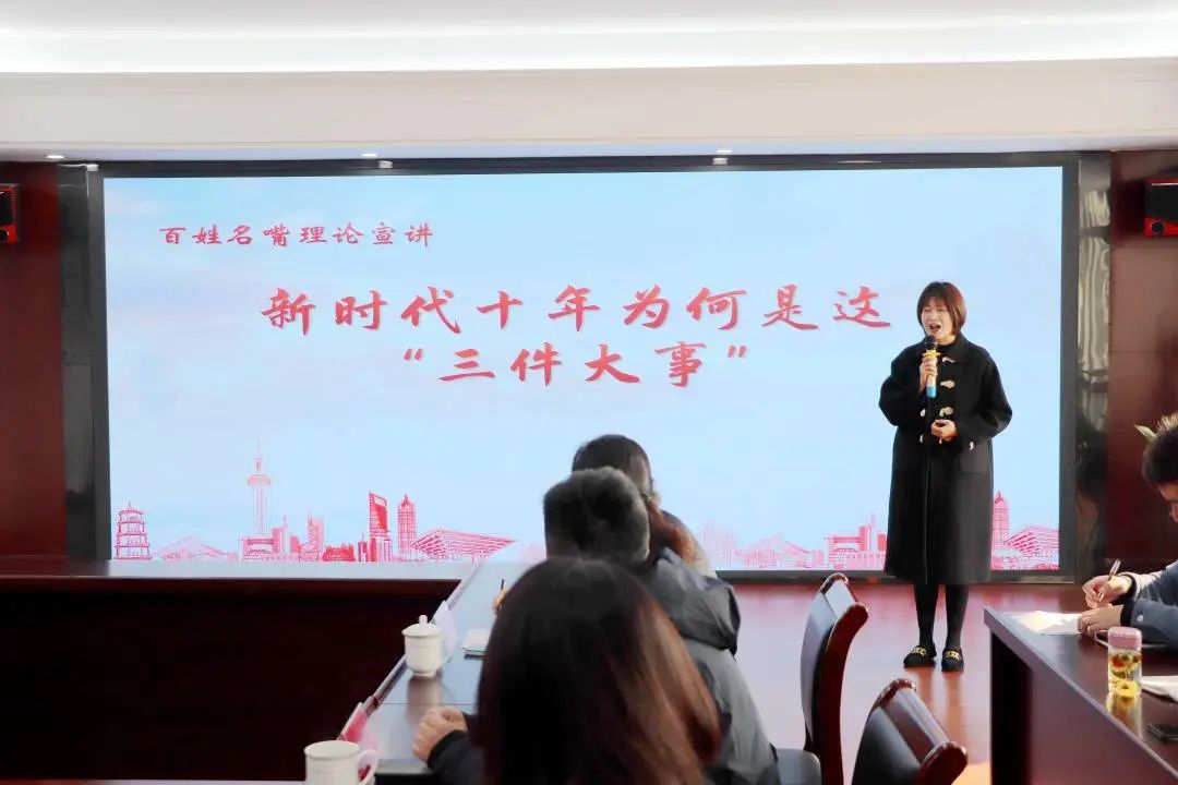 活动邀请姜堰区“堰之有理”理论宣讲团讲师王霞进行主题为《新时代十年为何是这“三件大事”》的理论宣讲。