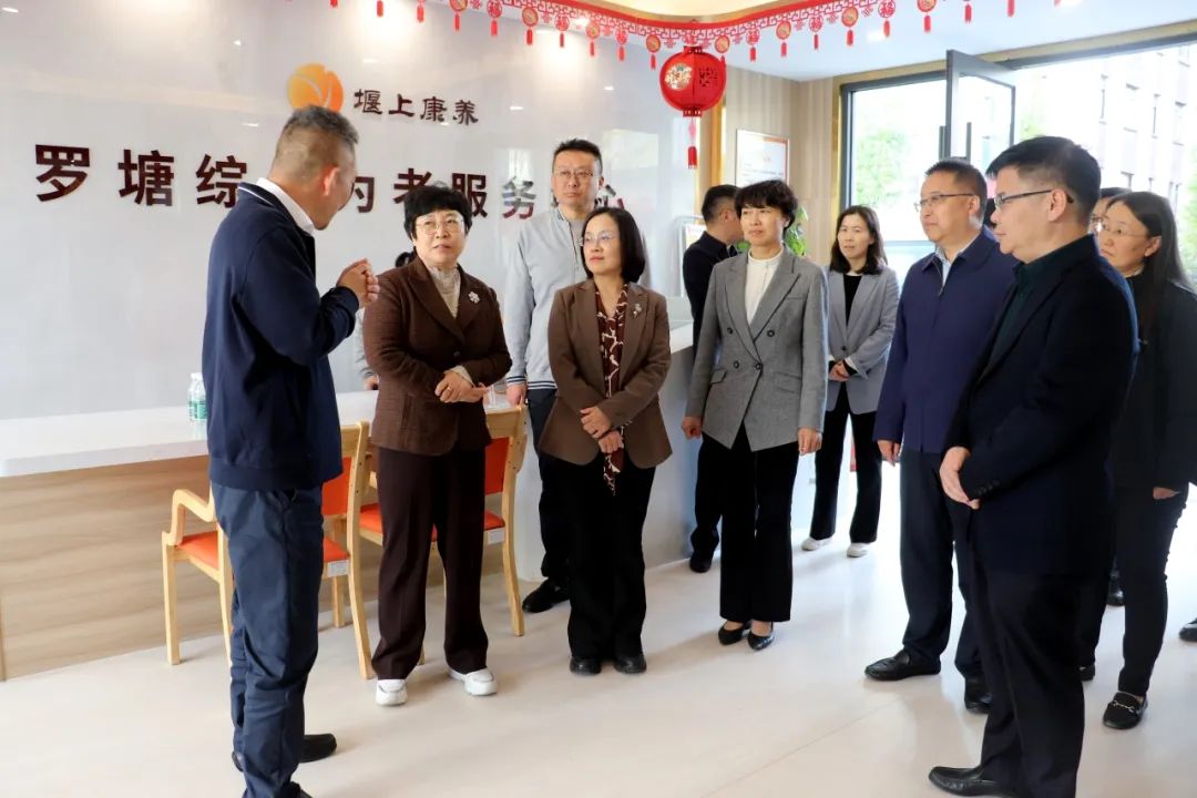 在姜堰区罗塘街道,调研组实地查看了罗塘综合为老服务中心的功能布局,详细了解姜堰区打造“15分钟养老服务圈”的做法,与机构负责人一起探讨小型养老综合体建设运营的经验做法和难点问题。该中心由原机关幼儿园改造而来,集嵌入式养老机构、爱心食堂、老年活动中心等功能于一体,已入住老人17人,每日助餐人数在100人以上,日活动人数近200人,养老服务指导中心监督指导居家养老服务老人3.5万人以上。调研组指出,要立足广大老年人“原居享老”的需求,加快完善社区养老服务设施网络,不断盘活资源,积极满足老年人多元化、多层次的养老需求,打造家门口的养老服务阵地。